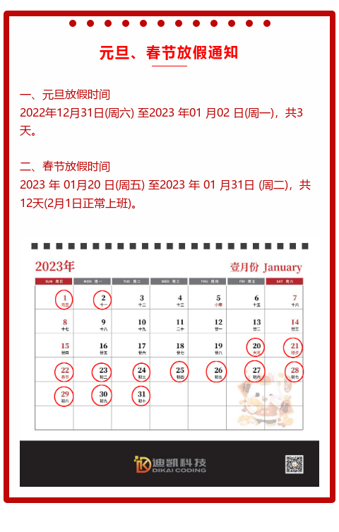 2023元旦春节放假通知